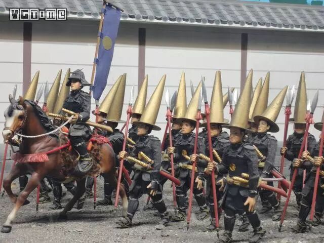 天正二十年,诸大名聚首京都,举行了远征朝鲜前的阅兵仪式。是他,是他,还是他!政宗的军队又一次吸引了人们的眼球:足轻头戴的是长约1米的土豪金阵笠,骑兵的刀鞘用金箔搭配朱色,马也用虎皮、豹皮装饰得十分华丽。