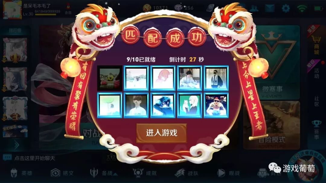 游戏匹配成功界面的对联和狮子,都十分契合春节氛围