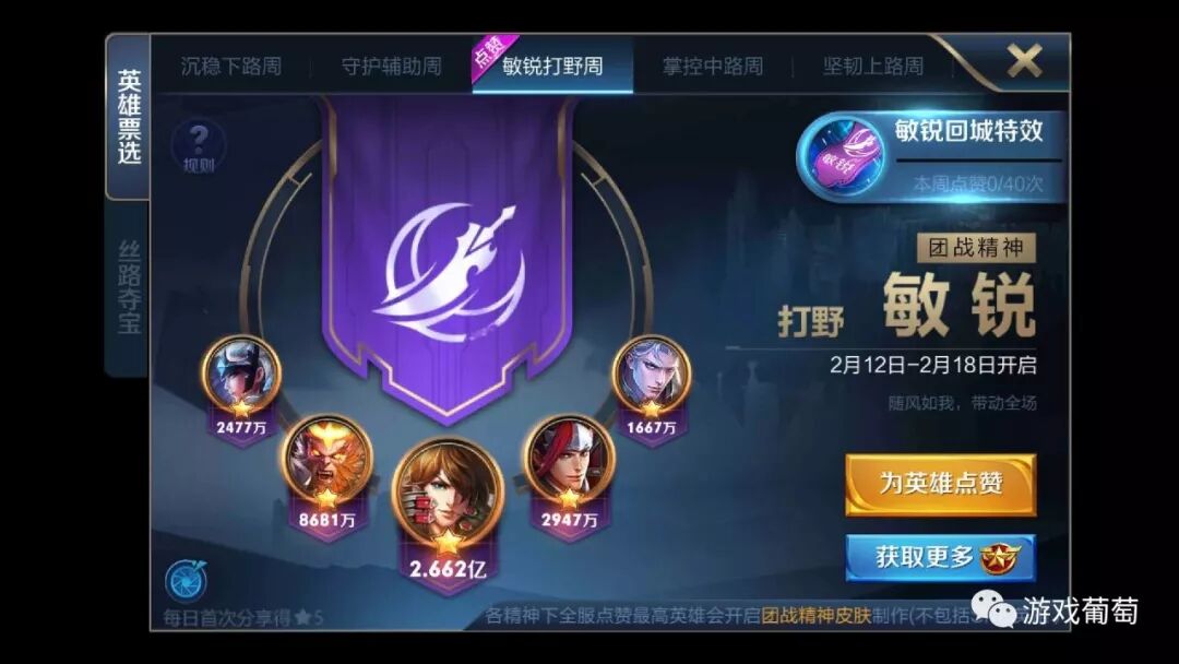 同时,比春节许愿活动更早的是团战精神活动。玩家可以通过游戏得到投票币,为不同定位的英雄投票,高人气的英雄未来加入皮肤制作计划中。在春节这种场景下,在游戏中特意强调团队精神和合作,也是强调游戏外人与人之间的交流。而考虑到新玩家的到来,《王者荣耀》还为每个英雄做了分路推荐,再次降低新玩家对游戏规则的学习成本。