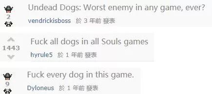内心善良的宫崎英高自然也不会放过狗这种可爱的生物。在《黑暗之魂》系列里,狗也是一种相当常见的敌人,它们的外貌和《生化危机》中的丧尸犬颇为相似 —— 全身无毛,皮肉溃烂,被它们那双血红的双眼盯上准没好事。在Google上随便一搜,你就能感受到大家对于这些狗狗们的喜爱了。