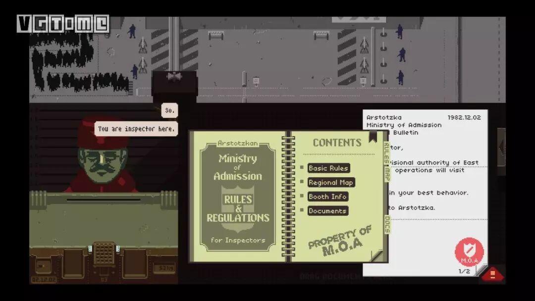 既然前文提到了《请出示文件》,我们就从《请出示文件》说起。在这款游戏中,玩家扮演的是虚构国家阿斯托兹卡(Arstotzka)的一名边境检查人员,国家常年处于强权统治状态,因此也有不少反抗势力想要推翻政府。作为公务人员的玩家则需要检查每一个申请入关者的证件与文件,并与其本人做出对比,确认文件规范且内容符实方可放行。