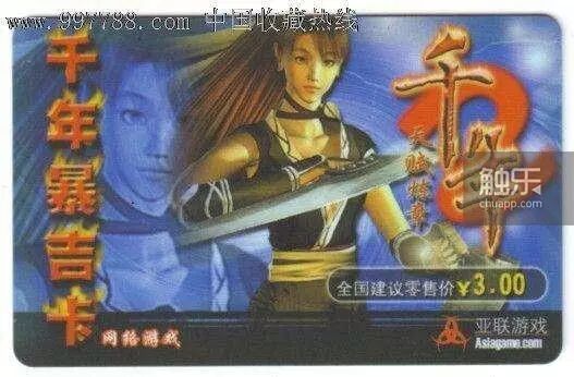 这是一款2001年网络游戏的点卡,在右下角你能看到亚联游戏的标志,我是在一家收藏品网站找到的这张图