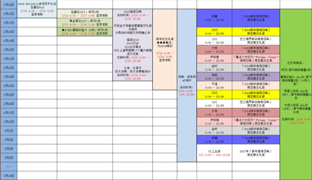 《FGO》的新春活动比较多,除了登录领奖、新年限定概念礼装等大礼之外,还包括2018福袋召唤、2018新年推荐召唤等限时活动等等。