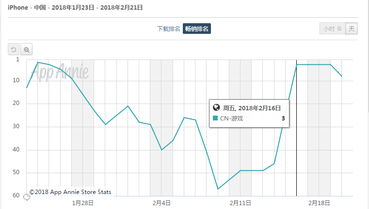 从App Annie的数据来看,春节期间《球球大作战》在游戏免费榜上的排名有所上升,一系列游戏营销起到了一定效果。