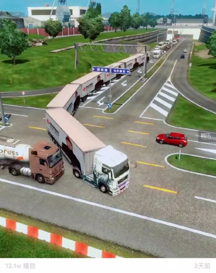 快手上流行的“欧卡”经过了细致的本土化,汽车大都是天龙、福田之类的国内常见车头,路牌等标识也都是中文的。和快手上流行的《GTA5》改造风潮一样,“欧卡”在快手上流行的也以“魔改”后的版本为主。排成一大长串的“陆地高铁”和用“欧卡”的车内视角驾驶豪车是他们最喜欢呈现的内容。