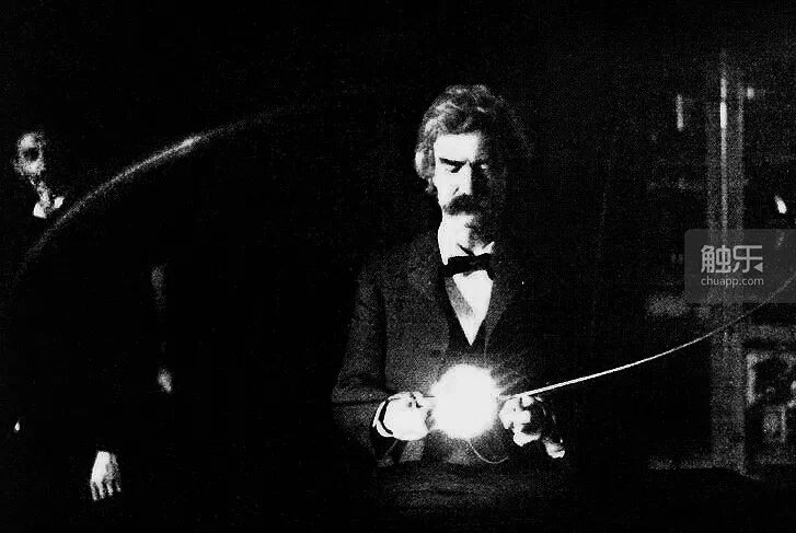 但这张拍摄于1894年春天的照片中,马克·吐温实际上拿着的是由特斯拉线圈供电的灯泡,根据维基,这在1895年4月发售的美国《世纪杂志》(The Century Magazine)中有明确记载。
