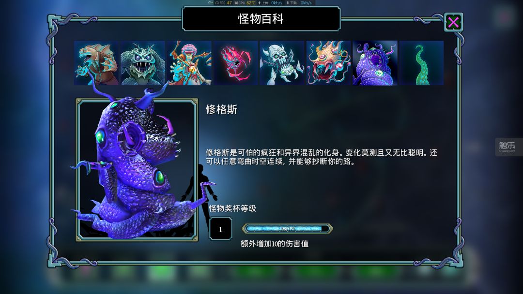 恐怖世界的创造者自然不会亲自出马,在本作中,洛夫克拉夫特本人取代了小说中克苏鲁的地位,成为了召唤恐怖生物的终级Boss——怪物出生点就是克总的大头雕像,这些生物则是他众多作品中的代表性角色。