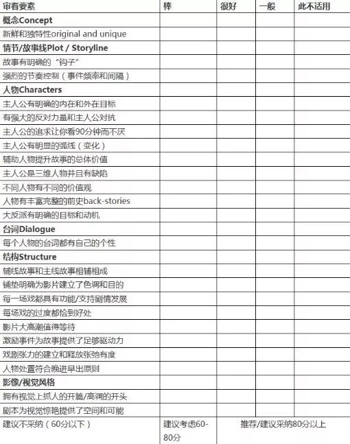 其实好的游戏剧情和好的剧本一样,其实是可以审核的,我贴一张网传的《影视公司如何评估你的剧本》给大家参考。