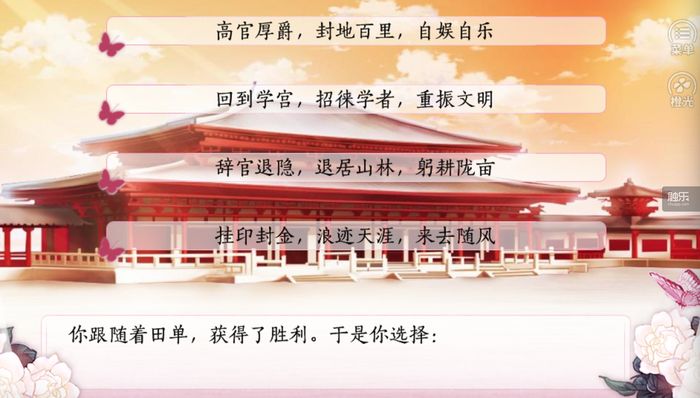 与剧情相比,游戏中更加重要的是接连不断出现的问题和选项。战国线中先秦时期的历史演变、重要人物、地理常识、诸子百家理论,中唐线中的唐代政治、经济、文化、外交等知识,都变成一个个问题,融入故事之中。