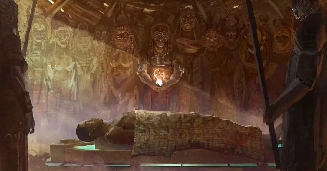 剧中场景主要设定在瓦坎达,曾有陨石坠落,带来了大量的振金资源(全球只有一个产地,那就是“瓦坎达”。),拥有强大文明科技,却隐匿在非洲大陆数代的国家。因害怕自己强大的科技落入别国。因而与世隔绝,让外界找寻了好几年都未曾找到这个神秘的国度。