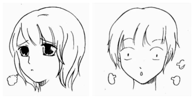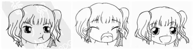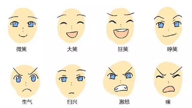 而且,在漫画、日漫、Q漫中,鼻子和耳朵对表情的作用甚至是可以忽略不计的。也就是说,剩下的眉毛、眼睛、嘴巴以及周围牵扯的肌肉才是表情绘制的重点。