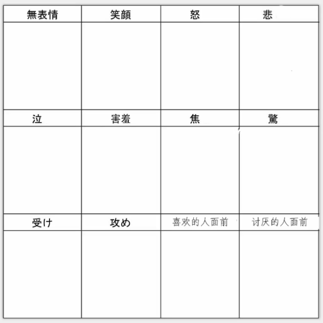 给你一个表情练习十二宫格图,你可以挑选一个喜欢的漫画角色进行练习哦!