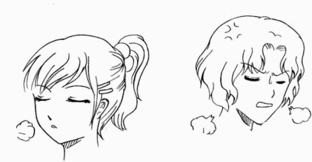 气息——表示人物叹气或呼吸时的气息,像说话时的对话框,形状多变。比较常见的场景是生气时急促的呼气、冬天里哈出的白气、情绪低落时的低头叹息。