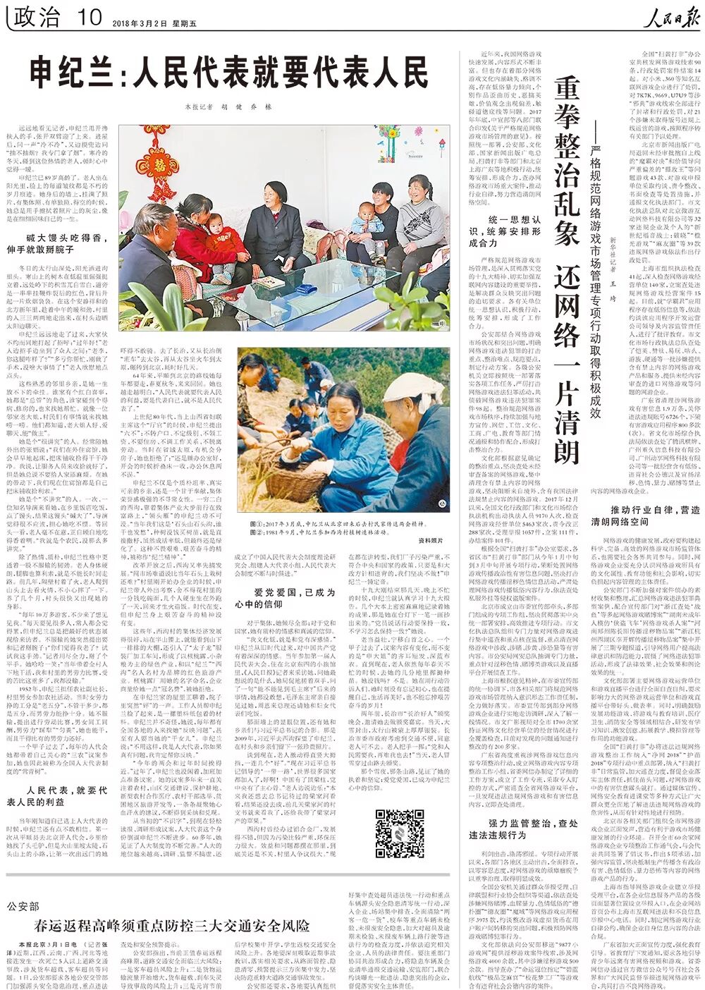 以下为3月2日出版的《人民日报》第10版相关报道原文: