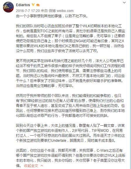 此文一出,读者哗然,更有曾参加过《魔兽世界》本地化工作的人员愤怒发声,表示从未听说过此人,《魔兽世界》的本地化跟他毫无关系。