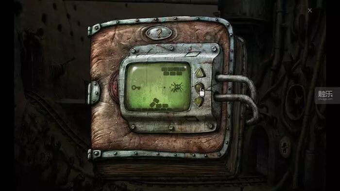 似乎意识到游戏难度过高,在《机械迷城》开发后期,Jakub为游戏添加了官方攻略,这就是游戏界面右上角的打蜘蛛小游戏,通关一次即可获得《机械迷城》的攻关提示。提示以纯手绘形式的暗示呈现,比起常见的物品高亮或直接文字提示,这个小心思显得聪明也有趣得多。