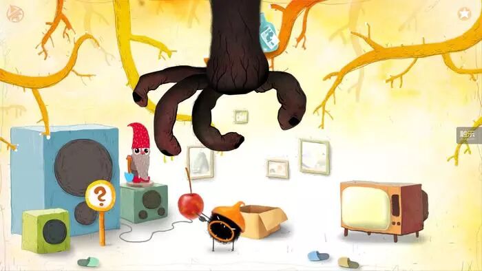 也是因这个原因,最早的《植物精灵》不太像一个游戏,而更像一部视频播片,谜题都很简单,没什么挑战性,玩家更像是在其中闲逛,间或看上一段动画演出而已。Jakub看过后觉得很可惜,他建议Jaromí为游戏添加一些挑战,在某些地方让玩家停下来思考一会。双方的沟通成就了《植物精灵》独一无二的风格:轻松、古怪、鲜活、幽默。