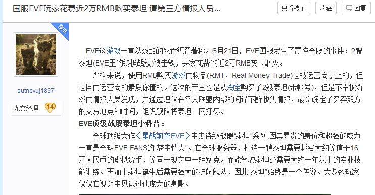 在2014年这游戏就爆发了一次超大规模的战争,光泰坦(游戏中非常高级的战舰,拥有很大威慑力的战舰,目前国服估价1200人民币)就有两百多艘。最后经玩家统计估算,这次有一百多艘泰坦被打爆,算上其他的各种战舰,一次性就蒸发了数百万人民币。