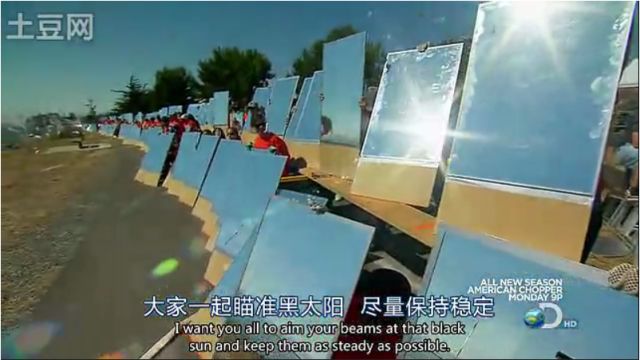 海量的镜子和举着镜子的志愿者。节目组采用了现代玻璃银镜,而实际上在阿基米德的时代人们使用的是反射率更低的金属铜镜