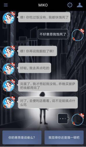 《异次元通讯》的玩法类似于AVG或Galgame(虽然游戏中没有明显的恋爱元素)。故事起因就像文章开头说的一样,玩家突然在手机聊天软件上接到陌生少女MIKO的求助,然后玩家通过这种“软件聊天”的方式,根据MIKO向玩家提出的问题或求助需求,去选择开发者设计好的回复选项与MIKO进行文字聊天,帮她出谋划策,解决问题或脱离险境。