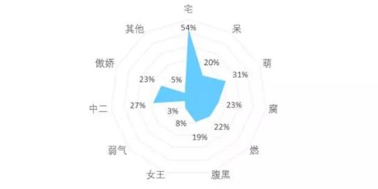 36氪的数据报告显示,“宅”是超过一半二次元用户认为自己所具有的属性;而“单身”、“从不参与社交”等则是大部分二次元用户的标签。