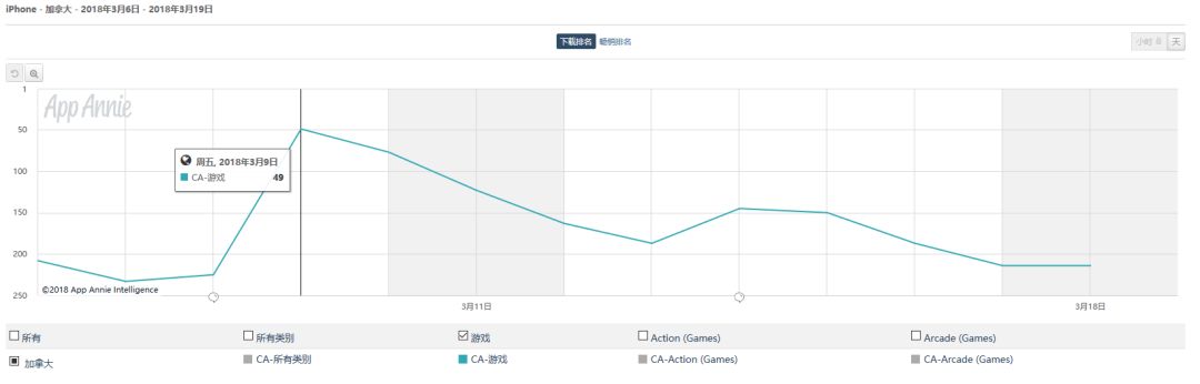 在去年12月7日的版本大更新当天,《Brawl Stars》在加拿大App Store畅销榜的排名从44名跃至第2名,下载榜排名从78名跃至第9名。但是从后续情况来看,《Brawl Stars》在加拿大App Store的排名波动较大,未能保持相对稳定攀升的状态。