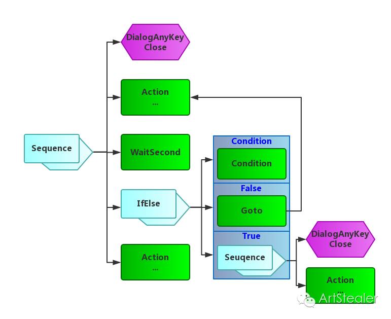 (如果还要增加对话框过了一段时间后自动关闭的功能,则只需要增加下图中黄色WaitSecond节点就可以了)