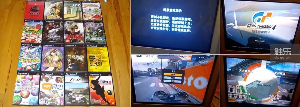 左图为“ikki_fxy”收集的16款PS2国行游戏,右图为“egegegeg”收藏的简体中文版《跑车浪漫旅4》运行截图