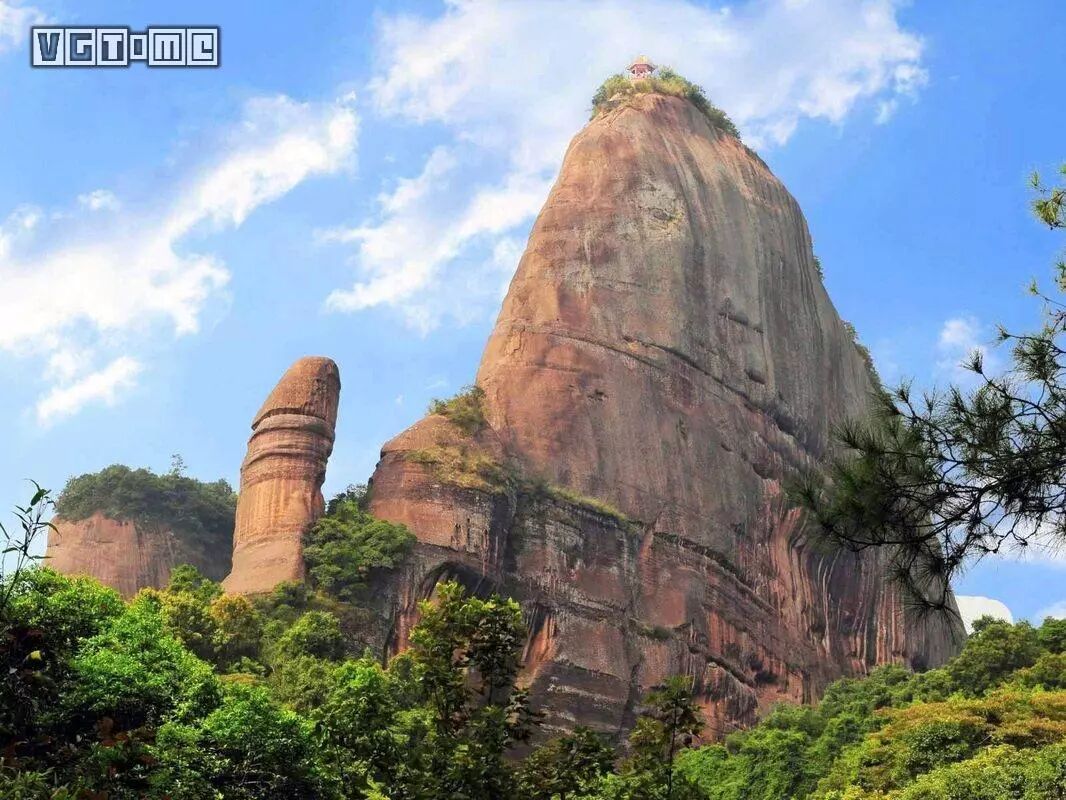 丹霞山位于广东韶关市仁化县境内,著名的丹霞地貌由此得名。丹霞地貌是指“以陡崖坡为特征的红层地貌”,丹霞山的石峰石柱的颜色和形状都太特别,绝对让人过目不忘。查丹霞山资料时候发现当地有一个的阳元石——