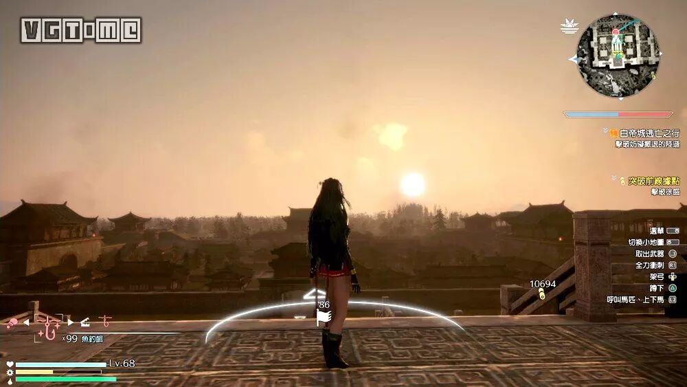 言归正传,游戏中的铜雀台仿照现存建筑,也算是再现了当年辉煌。爬上铜雀台看落日中的邺城,别有一番风情,不知道当年的曹操是不是也看到同样的光景。