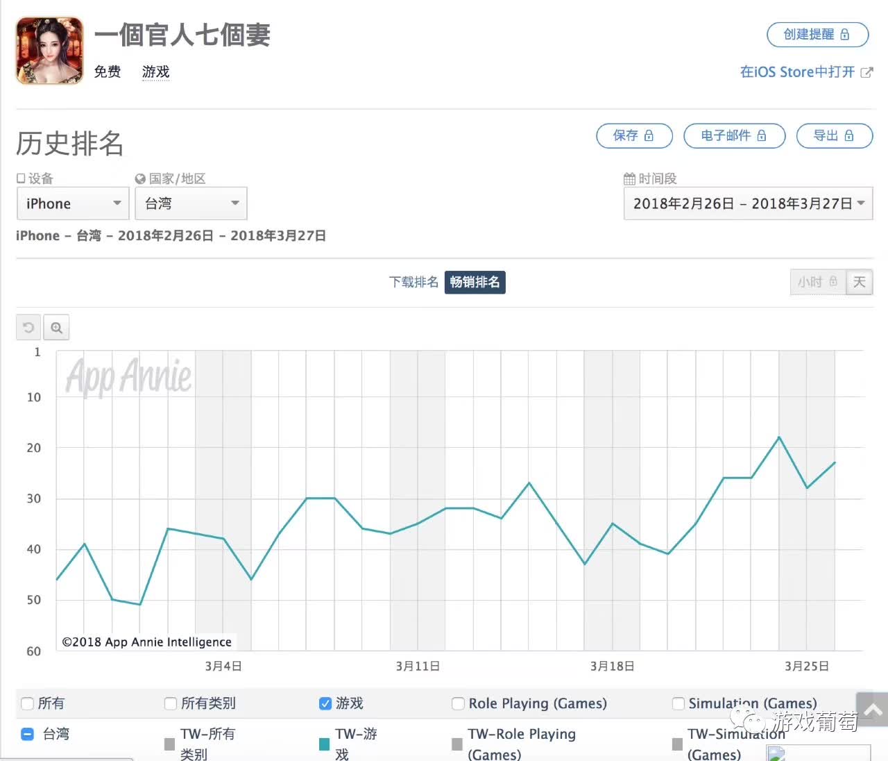 另外一款名为《一个官人七个妻》的游戏也在近期入围台湾App Store畅销榜Top50,且直奔Top20。