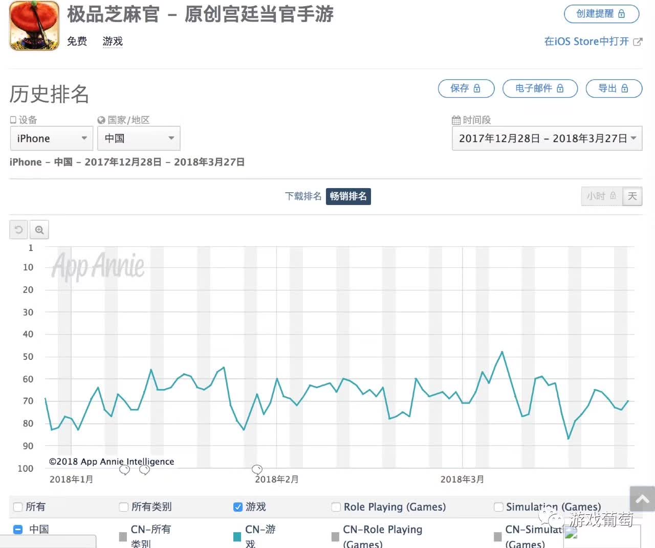 在最近两个月,另一款名为《极品芝麻官》的官场游戏在国内App Store畅销榜上的排名也稳定在50-90名之间。