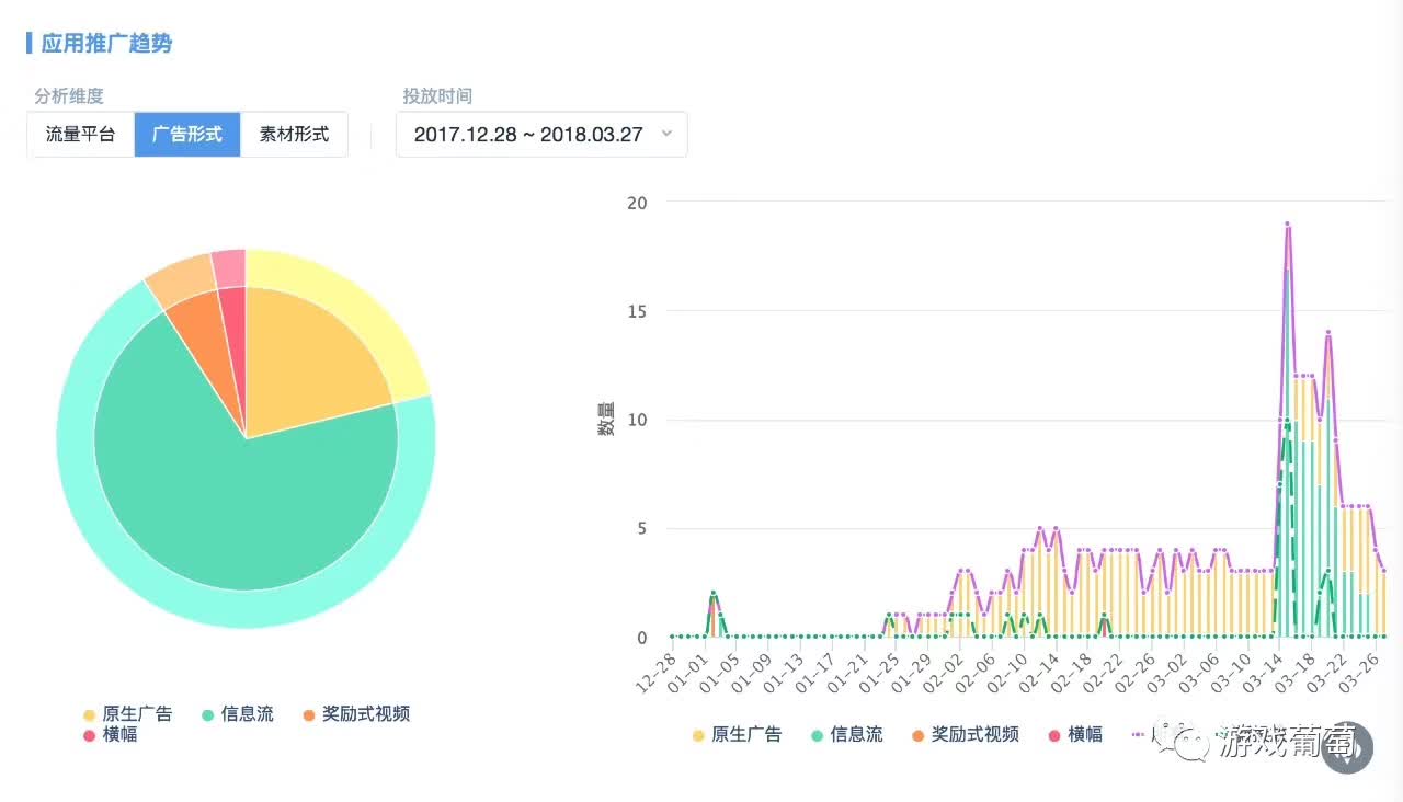 根据App Growing的数据,几款头部官场游戏的广告投放覆盖了腾讯智汇推、今日头条、一点资讯、UC在内目前几乎所有的流量渠道,投放形式则以原生广告和信息流广告为主,兼有少量的视频广告。