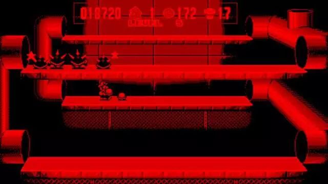 当长鼻君玩到《瓦利奥制造》里9伏特这一关的时候,彻底被击败了。这一关的内容,全部都是任天堂最经典、最古老的记忆,连关卡背景也做成了GB模样的《勇者斗恶龙》。