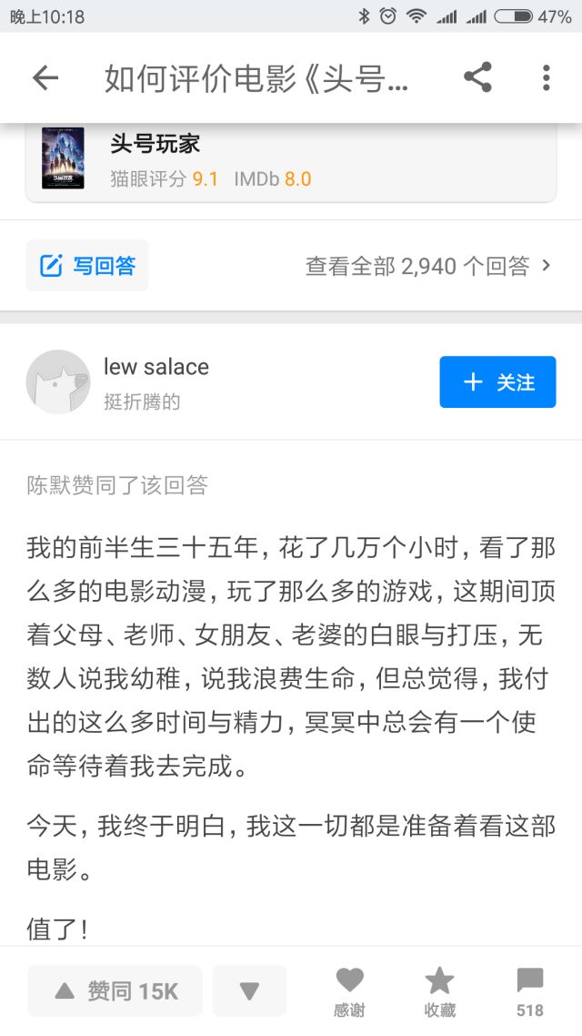 在知乎关于《头号玩家》的评价问题中,点赞最高的不是什么长篇大论的分析,而是一份简单的诉说,只是字里行间透着玩家群体特有的卑微甚至悲壮: