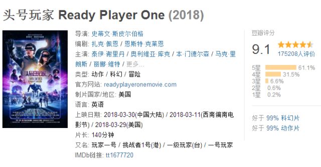 相比平时描述电影如何精彩、如何打动人心,许多朋友对《头号玩家》并没有用什么优美的词语渲染,有些仅仅留下简单的: