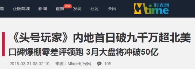 从数据上,《头号玩家》的首日成绩已然领先北美。