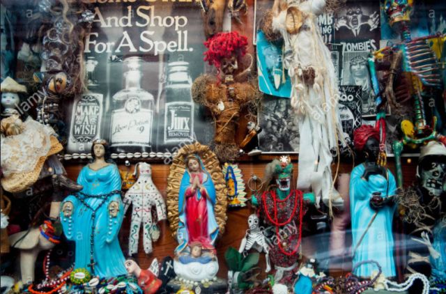 比较靠谱的源头来自海地巫毒。巫毒这个玩意儿,你们生人特别喜欢对吧,有句俗话怎么说的来着:宁可信其有,不可信其无。海地那么点地方的小小民俗,能引来那么多关注,跟18世纪大量海地人迁徙美国有关系,到新奥尔良转一圈,遍地都是巫毒商店,地方民俗到了美国立刻就发展成了商业,不愧是资本主义大国。