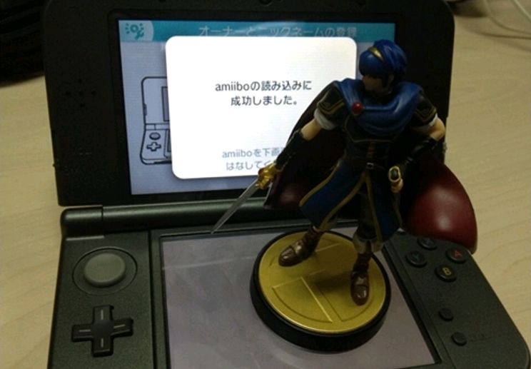 从示例图中可以看出,新的游戏机制是将具有Amiibo功能的卡片贴近3DS游戏机,从而达到读取卡片数据的效果。