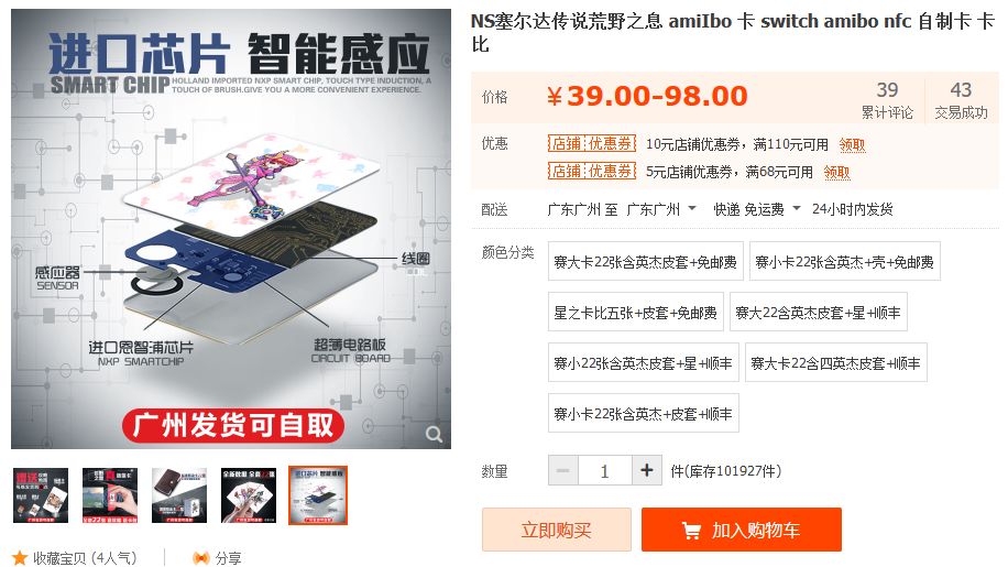 某宝上可以买到的自制荒野之息Amiibo卡,成本很低