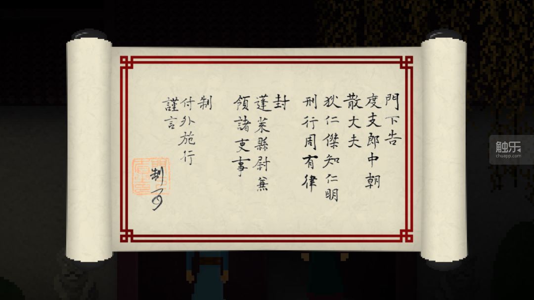 游戏开头的任命状,正文写法就与结尾的“制可”不同,好让玩家直观区分出“是不同人的手笔”