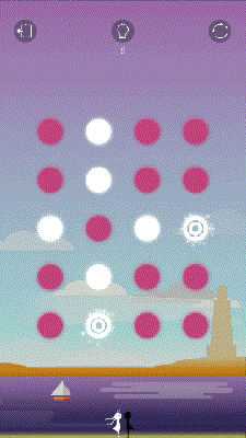 就是像这样,以同心圆为起点,指尖划过之处,圆点翻面,变为另一种颜色,将所有圆点转变为同一种颜色,即是胜利。