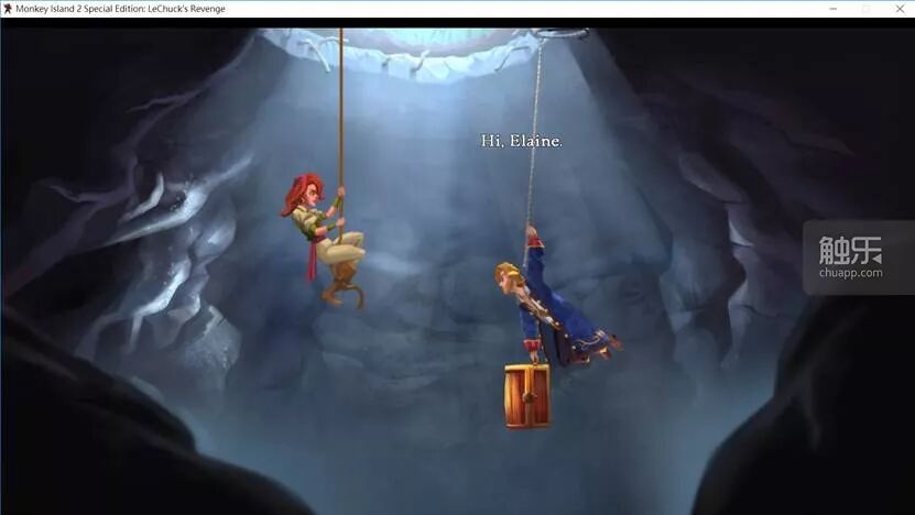 在这一代里,小盖威风了,成了有名的海盗,穿上了气派的外套。然而游戏一开始,我们就看到他悬吊在某个洞窟的半空中进退不得,然后伊莲来了。这到底是怎么回事?“说来话长。”──于是我们开始倒叙,游戏开始。等你玩了差不多整整3章以后,画面才切回来,说这就是我之所以被困在这里的缘故——制作组依然很会玩。