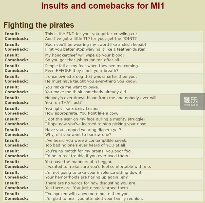 这些对话很难翻得传神(图片来源:“猴岛世界”(www.worldofmi.com)网站)