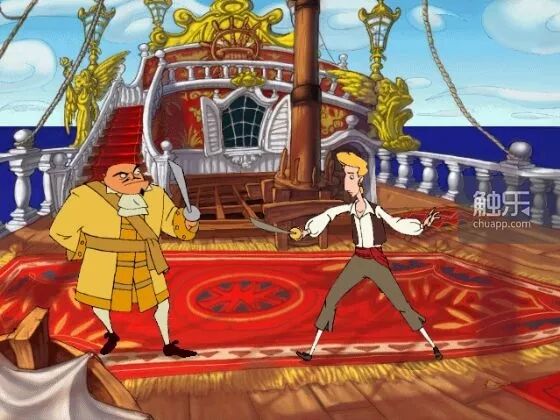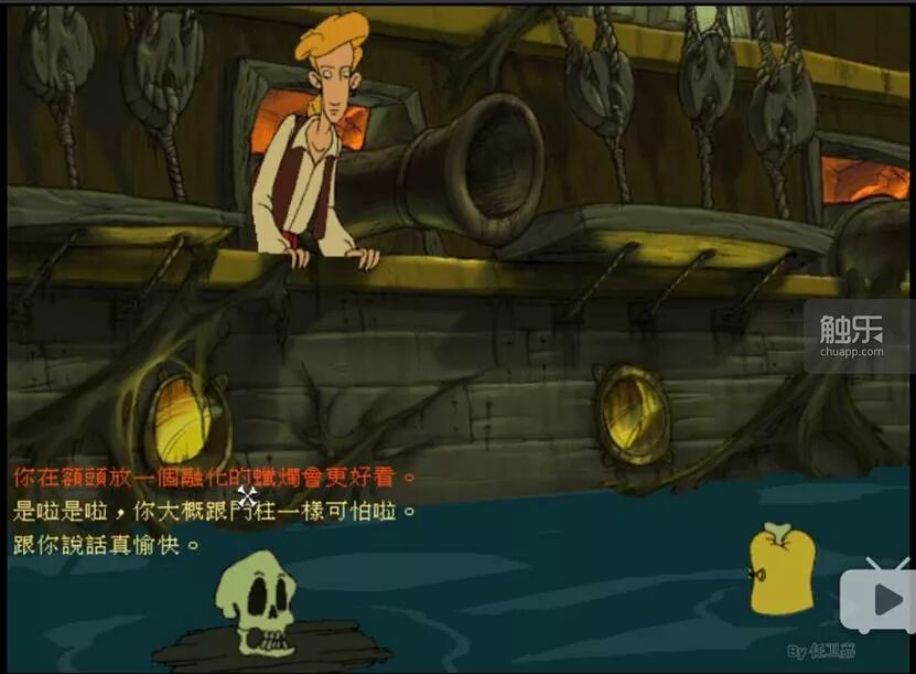 这个极具创意的战斗方式和幽默的对话,巧妙地适合了类型的需求(去除动作或数值的成份,让手残也可以安然通关),成了“猴岛小英雄”系列的招牌。当年的玩家对此新颖的设计赞不绝口,我8岁还不懂英文,照着《软体世界》的攻略去打也觉好玩。现在回顾起来,带点文学分析的眼光,也可以说,它彰显了本作的反讽基调,以及一个“破除虚荣”的主旨。