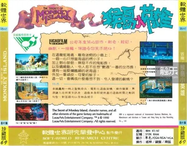 从游戏引擎来看,《猴岛小英雄》和同年稍早出品的《纱之器》(Loom)一样,将1987年初问世的“SCUMM”系统打磨到了成熟。SCUMM是英文“Script Creation Utility for Maniac Mansion”的缩写,直译为“《疯狂大楼》所用的脚本创作工具”,意译为“渣渣”──英文“Scum”一词在各种意义上都和中文的“渣”意思相同,这里多一个m,故中文意译也可叠字。