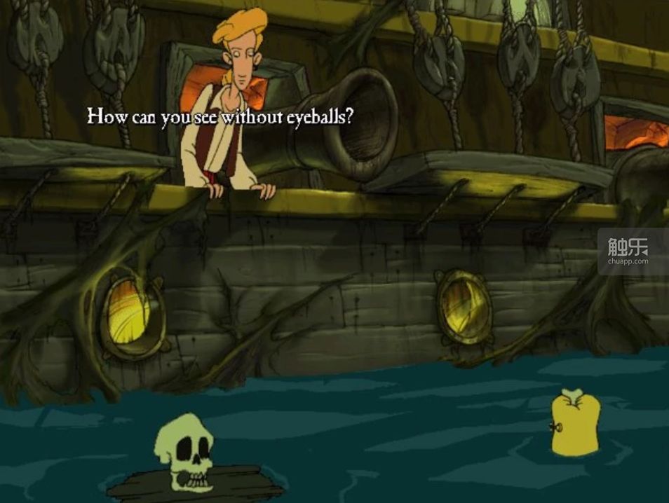 小盖:“你没有眼球怎么能看东西?”莫瑞:“你没有脑袋怎么能行动?有些事情是不需要解释的,小子。”这解释了“猴岛小英雄”系列的许多基本设计