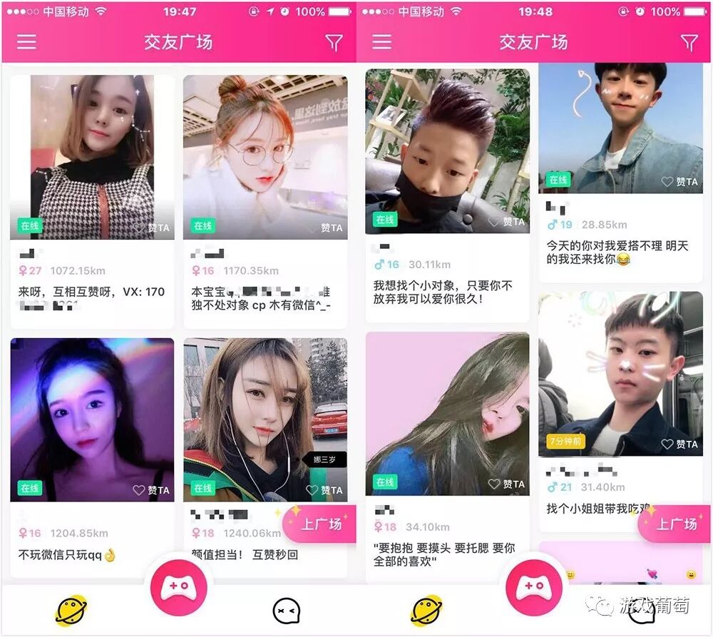 开心斗的交友广场:交友的、互赞的、约游戏的一应俱全
