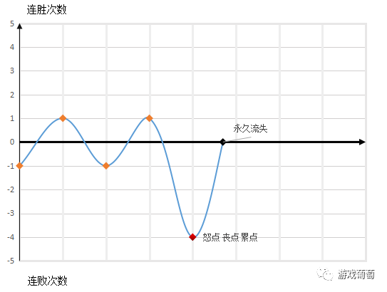 图三黑点表示玩家流失 ,不再继续玩该游戏,而发生黑天鹅事件,玩家连败一下没hold住,提前流失。也就是说原本玩家并不会立刻流失,也许还可以多玩几个月。