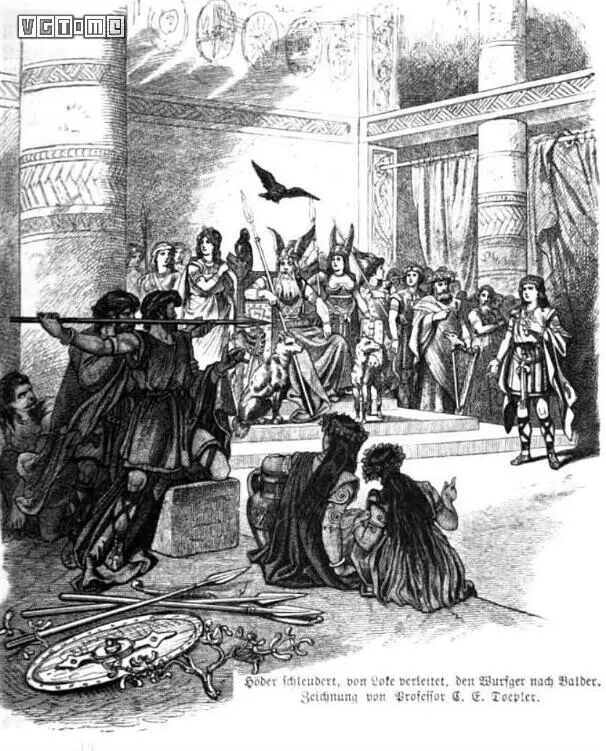 洛基作为火的象征,某种方面来说也可以代表光明,但众神偏偏独宠「巴德尔」一个人,这让就让他有点不爽了。于是洛基化作老妪去套芙蕾嘉的话,知道了槲寄生这个事情。然后洛基骗盲眼的黑暗之神「霍德尔」用槲寄生的树枝去扔「巴德尔」,却没想到树枝在空中化作利剑杀死了光明之神。